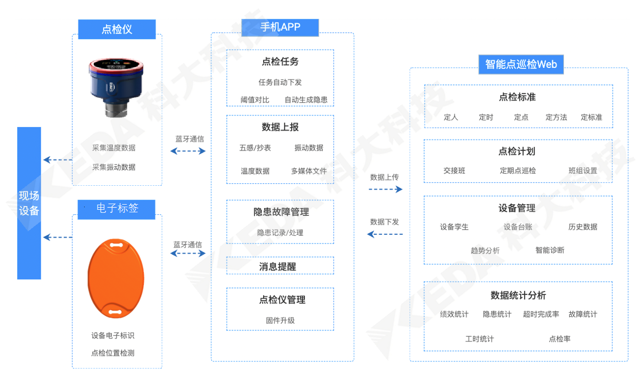 設備智能(néng)點檢系統(ellS)基于“定點、定法、定标、定期、定人(rén)”五定原則,以設備可(kě)靠性為(wèi)核心,應用移動互聯、電子識别等智能(néng)設備和(hé)信息化技術(shù),全面高效管理工(gōng)業設備的日常巡檢、專業點檢、精密點檢業務。