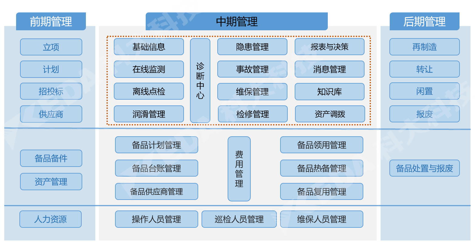 設備全生命周期管理系統(eLMS)是以生産經營為(wèi)目标,通(tōng)過一(yī)系列的技術(shù),經濟,組織措施,對設備的前期(規劃,設計,制造,選型,購置),中期(安裝,使用,維護,維修,流轉),後期(再制造、改造,報廢)的全過程進行(xíng)動态管理,以獲得設備壽命周期費(fèi)用最經濟、設備綜合産能(néng)最高的理想目标